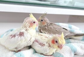 動画の手前にいる子2羽がWFルチノー(アルビノ)で3番目の子がノーマルです。