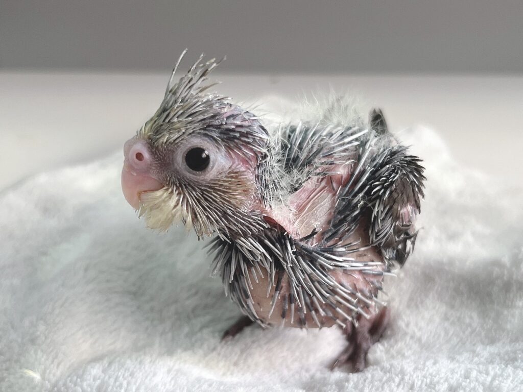 幼い雛ですが、現在はもっとツクツクが生えてきてハリネズミみたいになっています。